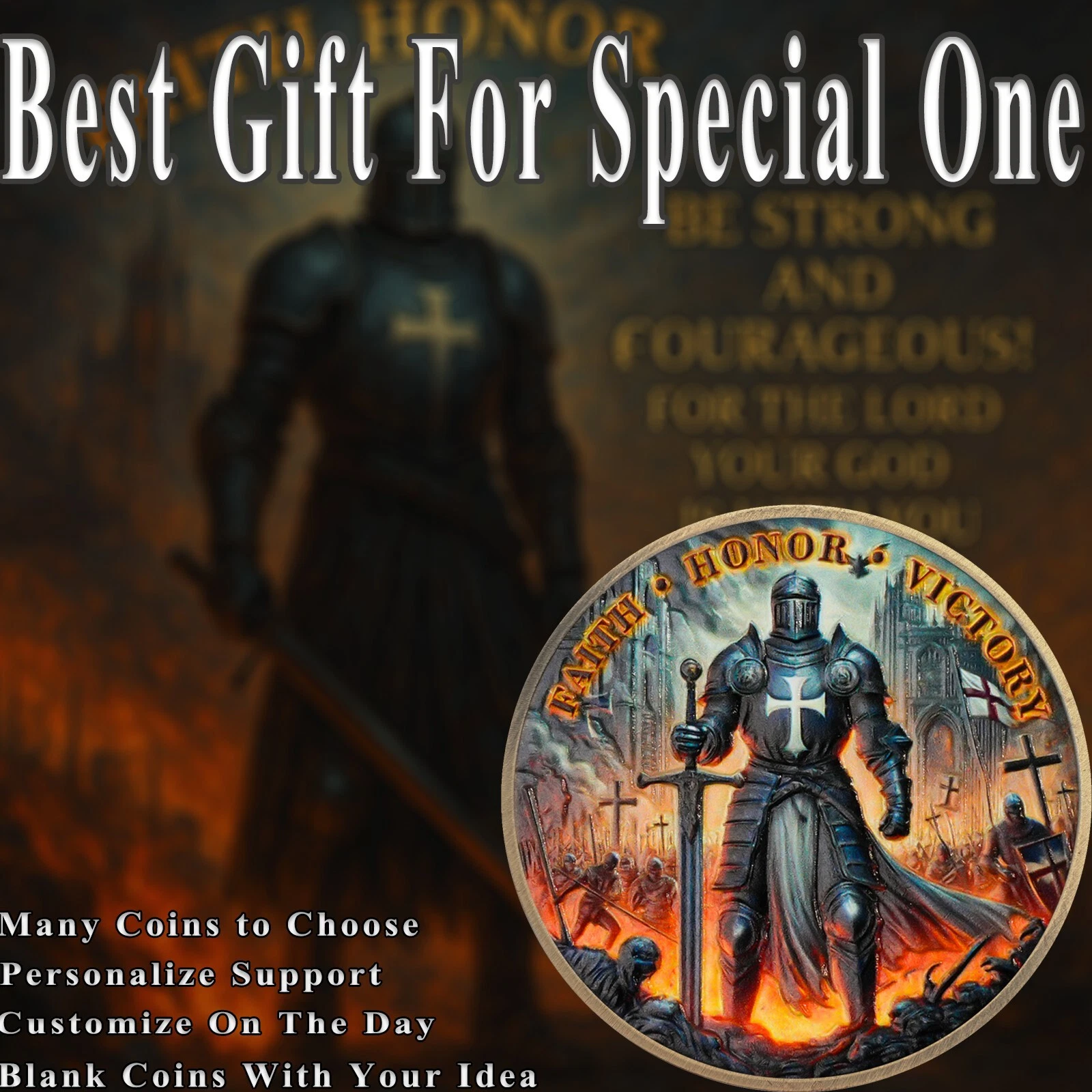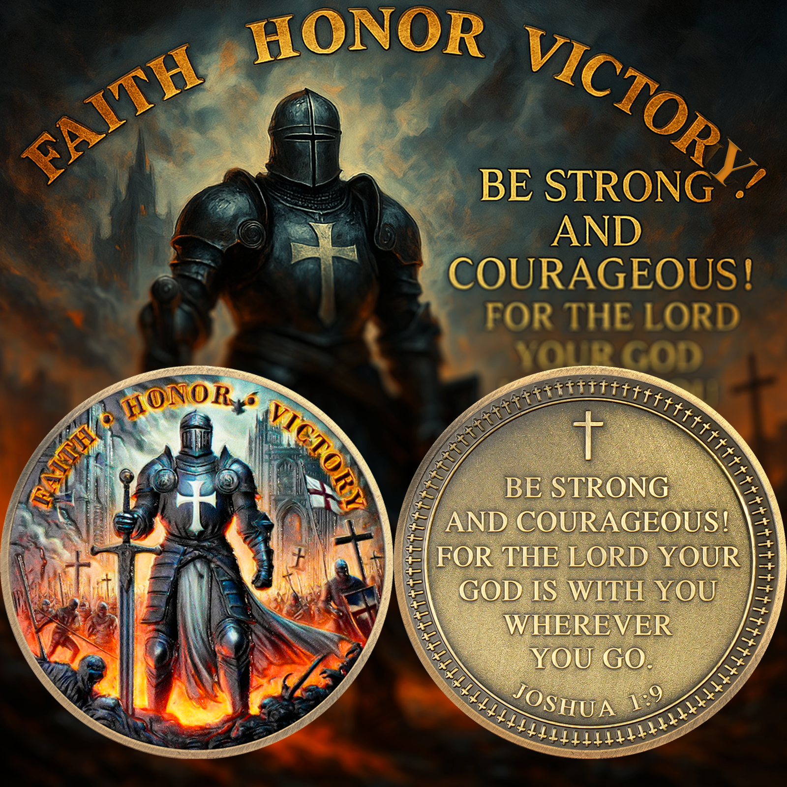 ⚔️ Knights Templar Christian Challenge Coin – Joshua 1:9