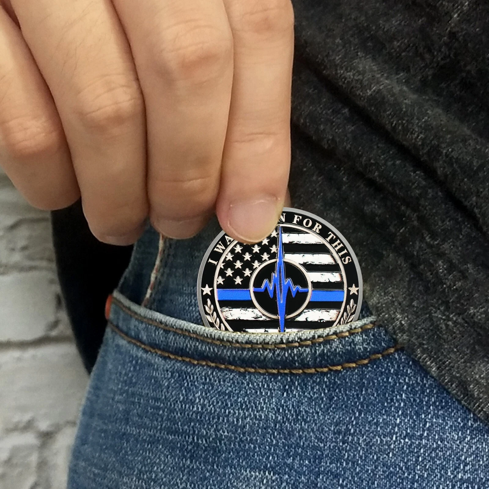 The reverse showcases the Thin Blue Line flag with a heartbeat running through it—reminding us of the living heartbeat behind every badge. Framed with the words “I WAS BORN FOR THIS” and “I WOULD DIE FOR THIS”, it’s a powerful salute to the sacrifice of K9 units and law enforcement.