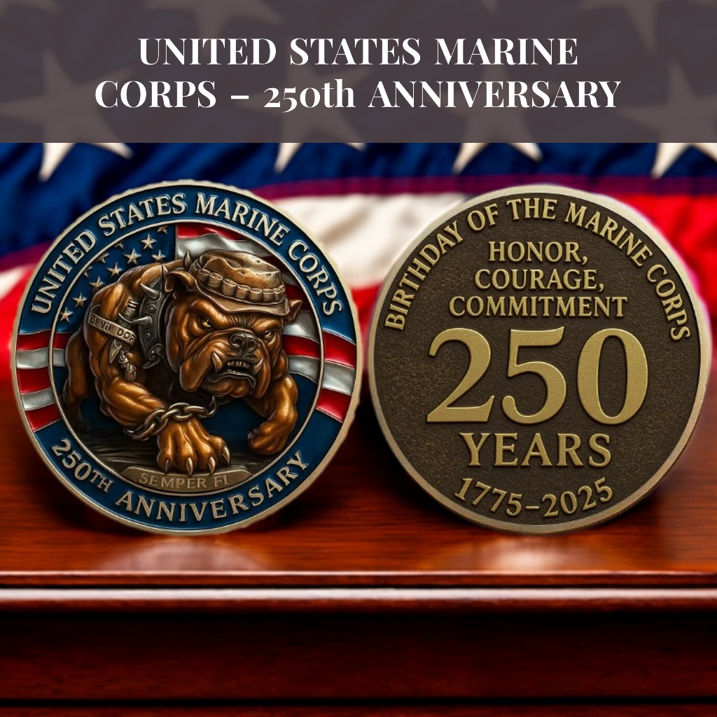 Since 1775, the United States Marine Corps has stood as a symbol of unmatched courage, loyalty, and strength. To mark its 250th Anniversary, this bold and masterfully crafted commemorative coin embodies the spirit of every Marine—past, present, and future.